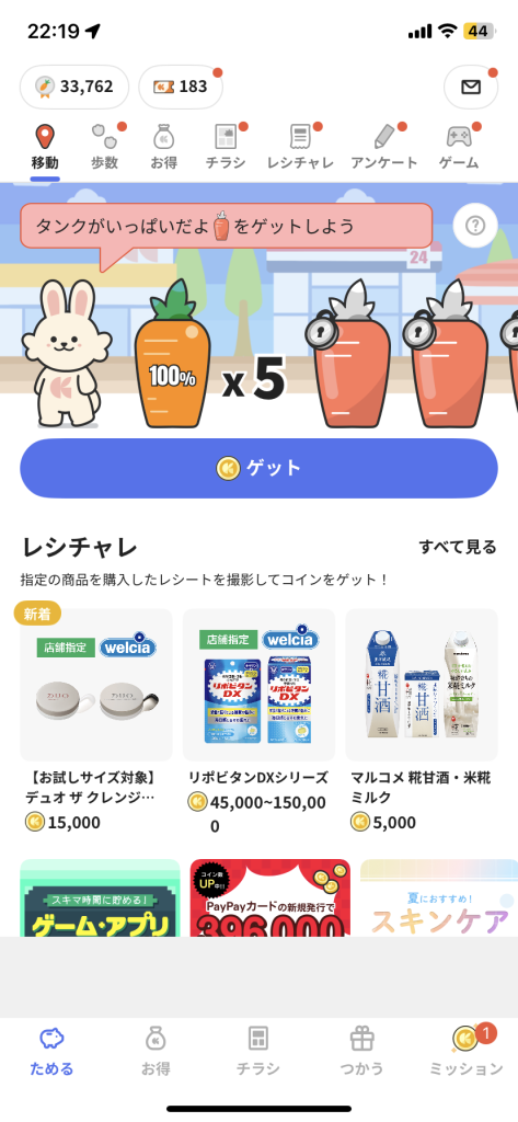 クラシルリワードでは、毎日の移動距離や歩数によってアプリ内コインを貯めることができ、貯めたコインに応じてVポイントやPontaポイントに交換することができます。