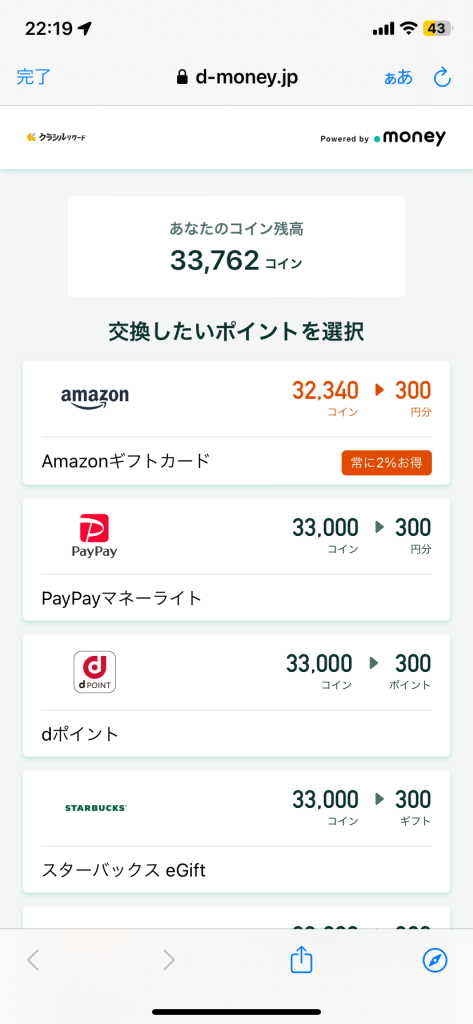 以上でクラシルリワードで貯めたコインを外部のポイントに交換するやり方の解説は終了です!