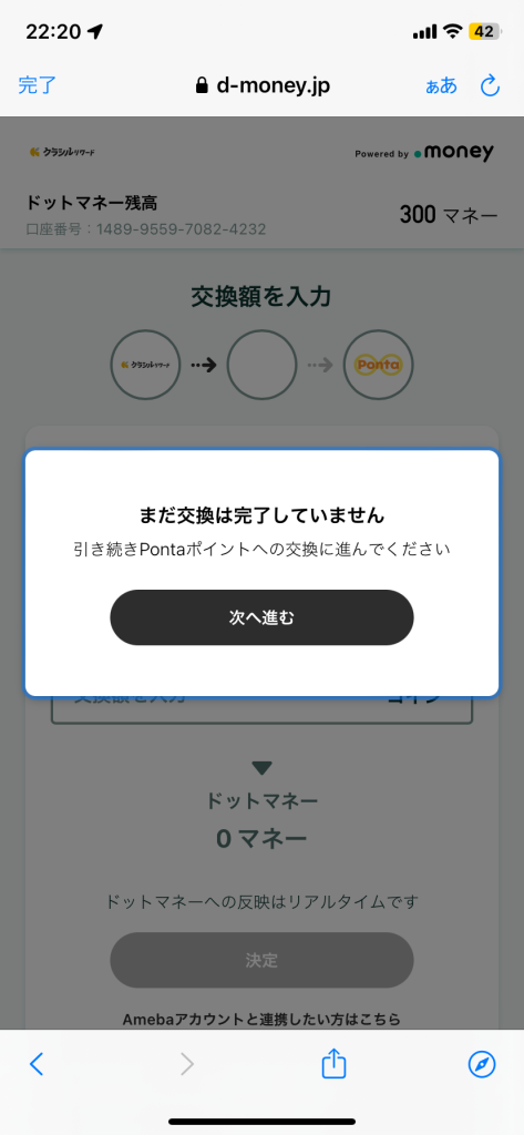交換の申請を行ってからポイントが反映されるまで数日かかるので、気長に待ちましょう。