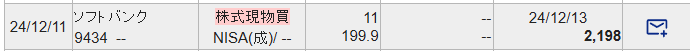 私は、今回ポイ活投資で貯めた残高でソフトバンク(9434)の株を11株購入しました。