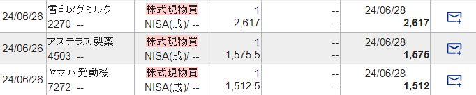 *6/27追記:SBI証券に株式購入の履歴が反映されたため、購入した株の写真を添付します!
