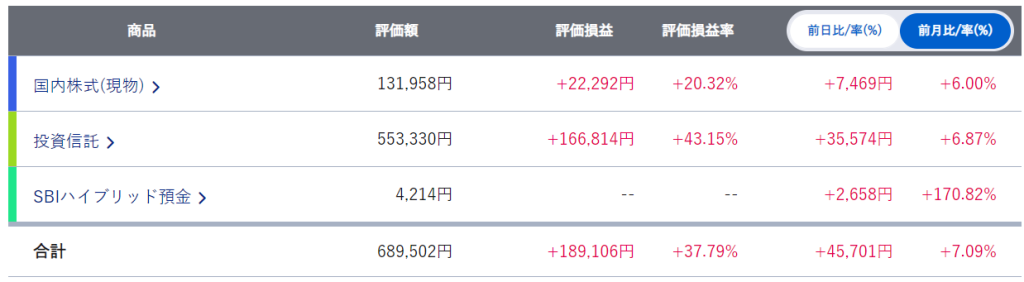 投資信託も先月から+7%ほど上昇しているため、順調です。