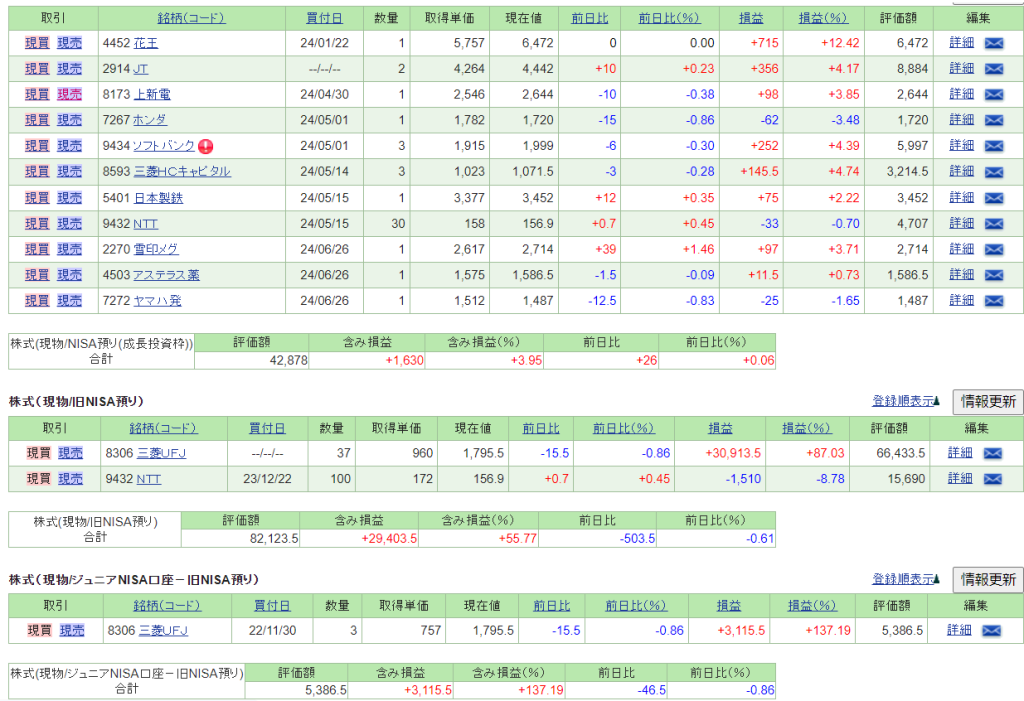 こうしてみると、株を多く持っている分NTTによる損が大きいのがわかります。