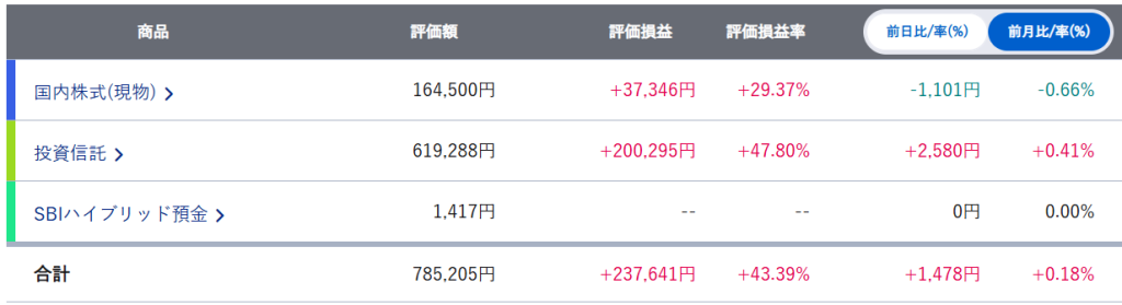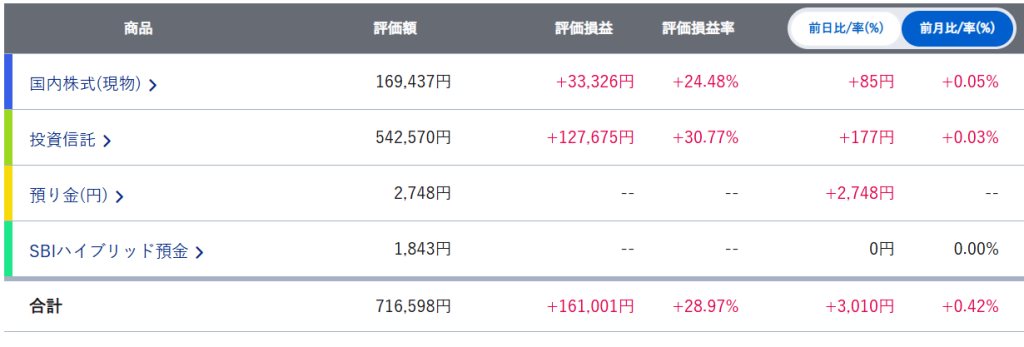 最近は日本株が高騰しつつあり、それによって株式の損益がプラスに転じました。